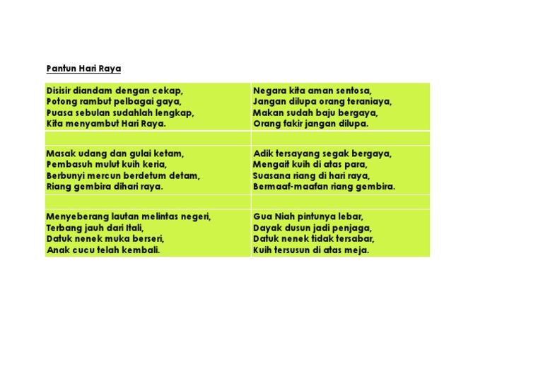 Dengan adanya pantun suasana yang terjadi bisa lebih cair dan menjadi menyenangkan. Pantun Hari Raya Aidilfitri.